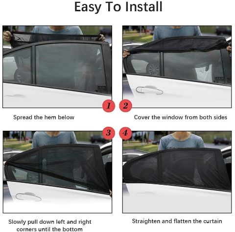 Mposhtni vapën e verës me perde Sunshade! Mbroni makinën tuaj nga nxehtësia dhe mbajeni të freskët dhe komode. Këto perde rrjetë janë ideale për të mbrojtur pasagjerët, përfshirë foshnjat, nga rrezet e dëmshme UV, duke ofruar privatësi dhe duke reduktuar ndriçimin nga dielli.