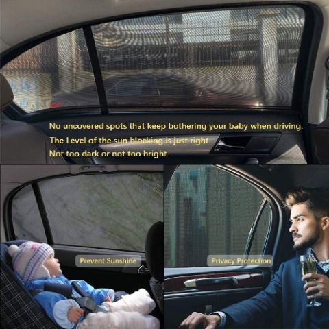 Mbulesat janë të endura dendur dhe të bëra nga poliester me dy shtresa me cilësi të lartë, që siguron mbrojtje të shkëlqyer nga rrezet e diellit. Mbroni foshnjën tuaj nga rrezet e forta. Harroni djegiet dhe shijoni një ambient të freskët e të rehatshëm në makinë.